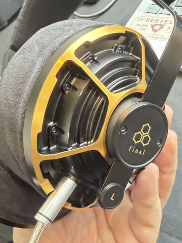 全体の口径は40mmとのことだが、ドームとコーンのハイブリッドにも見える。Focal「Utopia」も中心部にドーム形状を持つが、それよりもドーム部分は大きい印象を受けた。あたかもスピーカーのドーム型ツィーターを流用してヘッドフォン振動板にしたかのようにも見える。