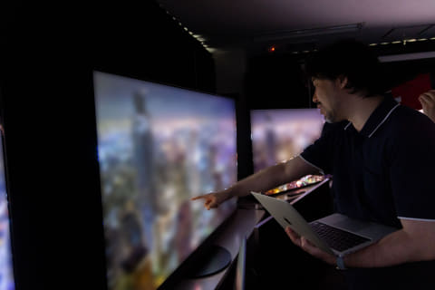 新モデルでは、ミニLEDのエリア分割数とピーク輝度を強化。'24モデル「Z970R」と比べ、エリア分割数を約1.4倍、ピーク輝度を1.2倍にまで高めた。パネル表面には、低反射ARコートと広視野角ワイドアングルシート採用。高コントラスト・広視野角・広色域な映像を実現している。