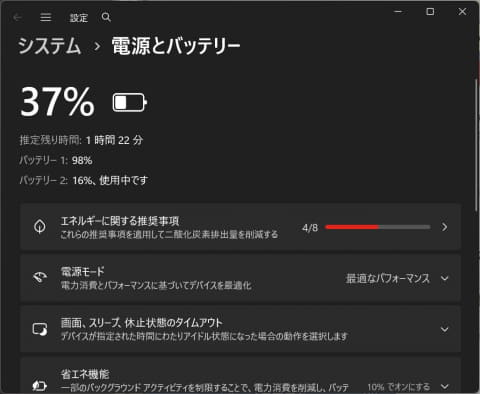 とはいえバッテリー制御もいい意味で大雑把で、バッテリー残量があと1時間5分とか出るが、1時間経っても残り1時間5分だったりする。このあたりのユルさが楽しい。