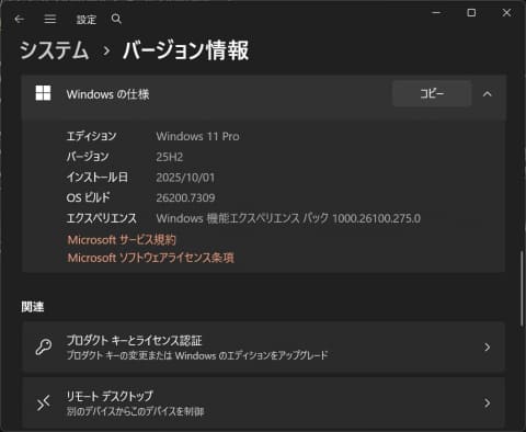 そうこうしているうちに、9月末には「Windows 11 25H2」がリリースされた。もともと正式対応していないモデルなので、黙って待っててもアップデートが降りてこないかもしれない。だが25H2のISOイメージからWindowsサーバとしてインストールすれば、アップデートできることがわかった。