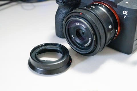 「FE 50mm F2.8 G」よりも寄れるので、何かを手に持って撮影したり、食べ物の撮影をしたりが便利なんですよね。画角もしっくり来ていて使いやすいです。要望を挙げるとしたら、せっかく小型のレンズなのに、フードが特殊な形で前に出っ張ってしまうところがちょっと難点です。お散歩用にバッグに突っ込むと、意外とここが邪魔になるんですよね……