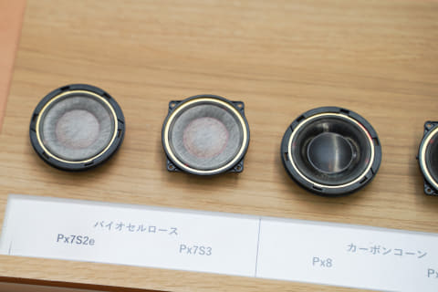 下位モデルのPx7 S3は、振動板にバイオセルロースと樹脂を混ぜたものを使っているが、初代のPx8、そして新モデルのPx8 S2では40mm径のカーボンコーンを使っている。