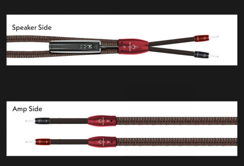 これまでAudioQuestのスピーカーケーブルはプラス側とマイナス側を1本にまとめていた。たとえば私が愛用している「Dragon ZERO」を例にとると、プラス側とマイナス側は独立しながら1本の楕円のようにまとめられている。