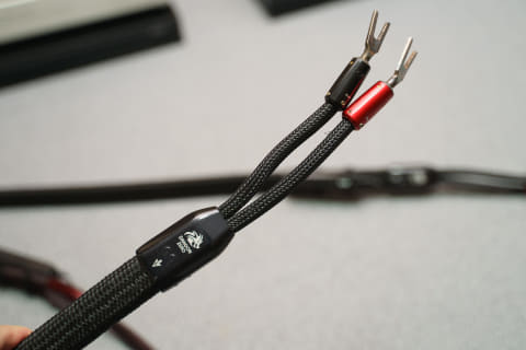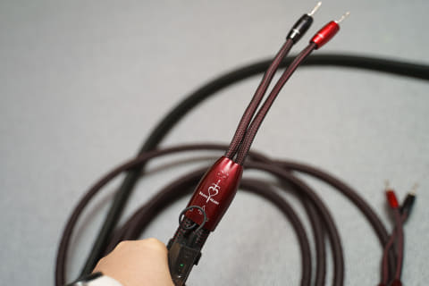 それはアンプ側の接続に自由度をもたらしており、振動の観点から考えるとプラス側とマイナス側が独立しているぶん、同相的な振動を回避できている可能性がある。それが音に解放感をもたらしているとは証明できないけれども、これまでのAudioQuest製スピーカーケーブルとは異なるコンストラクションなのは間違いない。