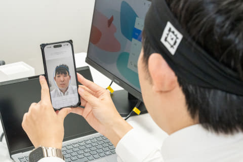 顔のスキャンは、スマホの顔認証の設定のような感覚で行なう。スマホの画面を見ながら上下左右に顔を動かすだけだ。
