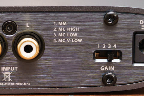 MM/MCカートリッジ両方に対応し、ゲインや負荷抵抗の切り替えも可能。MC使用時のゲインは48dB/60dB/72dBの3段階、負荷抵抗も100Ω/400Ω/1kΩの3段階から選択できます(使うカートリッジに記載されている推奨負荷抵抗をベースに設定)。さらに、MM使用時には、負荷容量も100pF/200pFの2段階から設定できるようになっています。