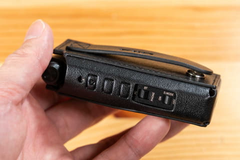 これだけのハイスペックながら、外形寸法は約16.3×41.2×86.6mm、重さは約73.4gと手のひらに収まるコンパクトサイズなのもポイント。BTR17は本体にクリップなどはないものの、付属の専用レザーケースにベルトループが備えられている。