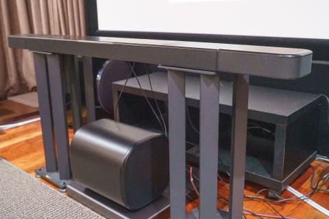 だが、厳密に言えば音が出る位置は画面の下になるため、画面とサウンドバーは近づけたい。テレビラックなどの手前のスペースに置くことが、画面との距離も最短となり効率が良い。プロジェクターユーザーも、投写画面やスクリーンに合わせてなるべく近い位置にすることがポイントだ。