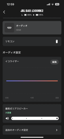 この場合、サウンドバーからの画面表示が確認できないが、幸いBAR 1300MK2は画面に情報などを表示する機能は持たないので、まったく問題ない。なお、サウンドバーへ入力された信号の確認などは、前面にあるディスプレイで確認するか、スマホアプリ「JBL ONE」で確認する仕組みだ。