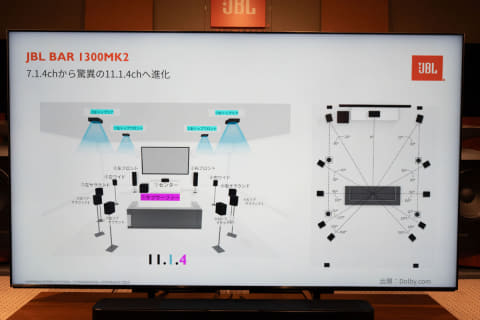前置きが長くなったが、そんな現在において、大画面にふさわしいスケールの大きなサウンドを提供できるサウンドバーの中で、筆者が実際に「これならば単品システムと比べて後ろ髪を引かれる思いなどすることなく、大画面と組み合わせても満足できる、“サウンドバーを超えた製品だ”」と実感したモデルを紹介したい。それがJBL「BAR 1300MK2」だ。