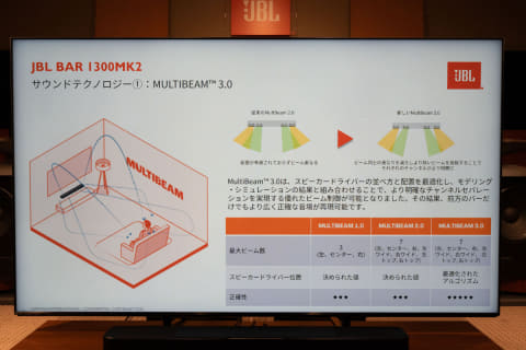 音をビーム状にして壁に放射して、豊かなサラウンド感を再現する独自の「MulitiBeam 3.0」があり、人の声の明瞭度を高める「PureVoice 2.0」、その技術を応用して細かなディテールや微妙なニュアンスまで再現する「SmartDetails」といった新技術が現行モデルで採用されている。もちろんすべてのモデルがHDMI eARCで薄型テレビとケーブル1本で接続でき、Dolby Atmosに対応する。
