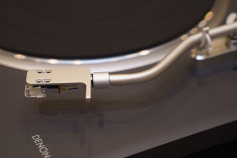 その結果、デノン伝統のS字トーンアームで、独自の「トラッキングエラー・カーブ」を追求したものが完成。線速度が遅く歪の多い内周でエラーを0に近づけ、線速度の速い外周ではエラーをある程度許容するという思想に基づいて設計されたもので、このカーブを実現するための有効長、オフセット角、オーバーハングの値が定められている。これを満たすことで、かつての業務用機器と同等のスペックを実現したという。