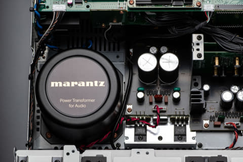 アナログオーディオ回路用には専用の電源トランスとディスクリート設計の整流回路/平滑回路を搭載。デジタル回路との干渉を排除している。DAC回路やプリアンプ回路、HDAMなど、回路ごとにトランスの巻き線を分けて、回路間の干渉も排除しているという。ブロックコンデンサーはAV 30専用に開発されたカスタム品で、6,800μF×2を搭載している。