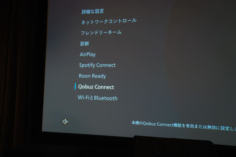 今度は、ネットワーク機能「HEOS」を使って、音楽サービスのQobuzから米津玄師の「JANE DOE」を聴いた。いわゆるストリーミング音楽サービスでの実力も問題なし。子細に比べれば、インターネット経由で配信される音源と宅内のサーバーにある音源とでは多少の差は生じるが、はっきりとした落差のない再生が楽しめた。なお、インターネットへの接続は有線LAN接続。WiFiやBluetoothは設定で無効にするといったAV 10での設定も同様にしている。