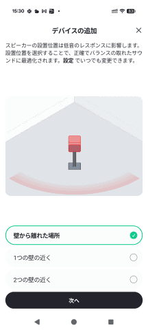 アプリで広さ/高さをマイナスにしていくと、空間が狭くなり、どんどん目の前のスピーカーに凝縮されていく感覚になる。逆に、プラスにしていくと、スピーカーの存在感がどんどん薄くなり、周囲に空間だけが出現する。体験として面白いので、何度もアプリでプラスにしたり、マイナスにしたりと繰り返してしまった。