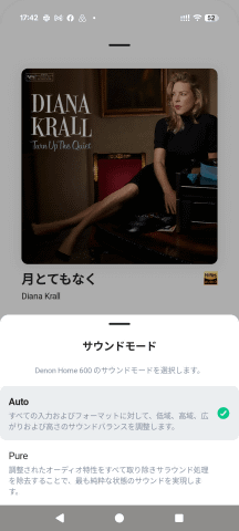 また、Atmos楽曲ではない、普通のステレオ音源を、デノン独自の技術で空間オーディオへ拡張して再生する事もできる。要するに、デフォルトの「Autoモード」にしておけば、空間オーディオの曲であれば、含まれている高さや広さ情報を活かした再生を、そうでない音源も良い感じ拡張して再生してくれる。ユーザーが音源の種類を意識したり、操作しなくても、あらゆる音楽を、部屋に満たしてくれるというわけだ。