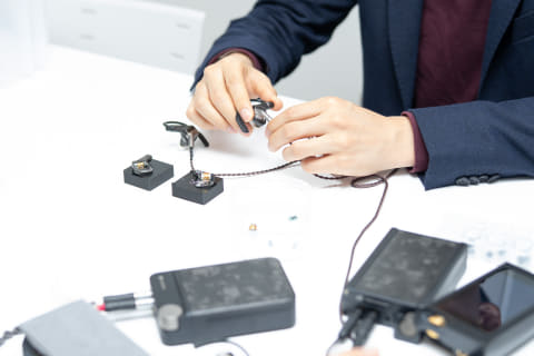 佐々木氏は、「何度も試聴を繰り返して、FUGAKUとは違う音の方向性を目指していたのですが、なかなかそれが難しかった。それまで、IBUKIの試作機はMMCX端子で作っていたのですが、今年に入ってPentaconn Earを採用する事に決め、それに併せて内部を少し作り変えたあたりで、チューニングの面でも、IBUKIで到達したいゴールが見えました」と語る。
