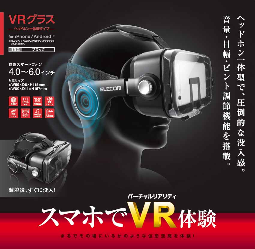 ヘッドフォン内蔵で装着感を高めたVRグラス。ARコンテンツにも対応