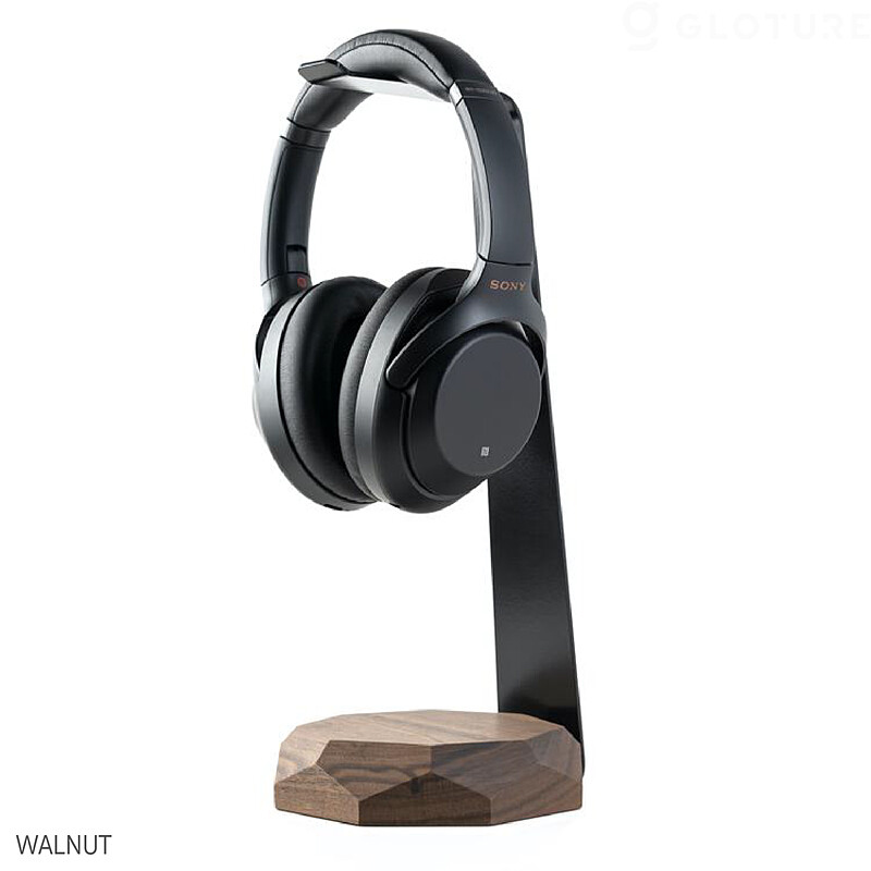 木製のベース部分にQiワイヤレス充電器を内蔵したヘッドフォンスタンド