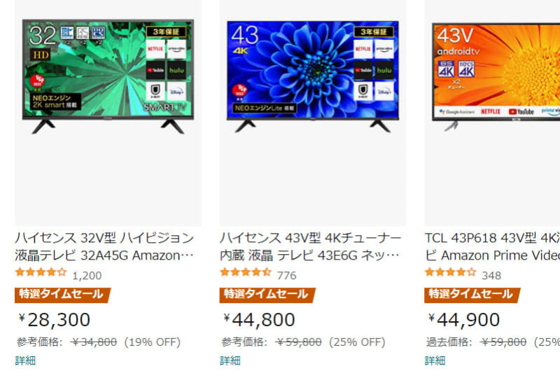 Amazon初売り、AQUOS、レグザのテレビやnasneがセール