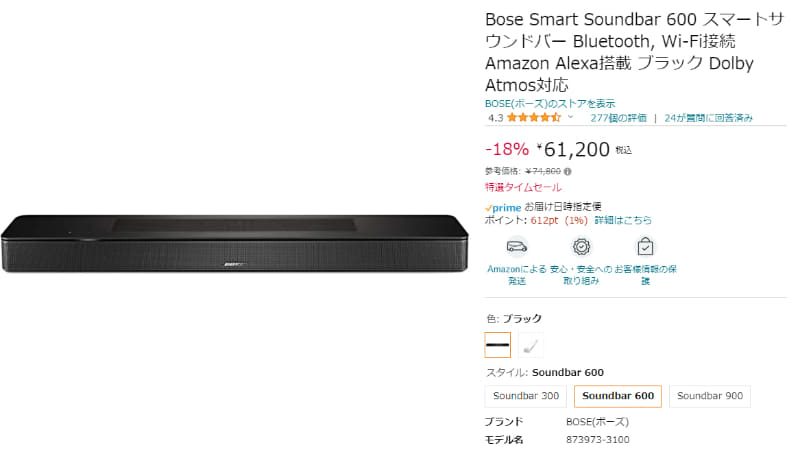 ボーズのサウンドバーが18% OFF。Amazonタイムセール