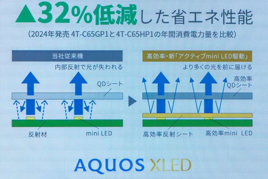 シャープ、独自パネルの量子ドット×ミニLEDアクオス。輝き1.5倍で消費電力32%カット(5/23)