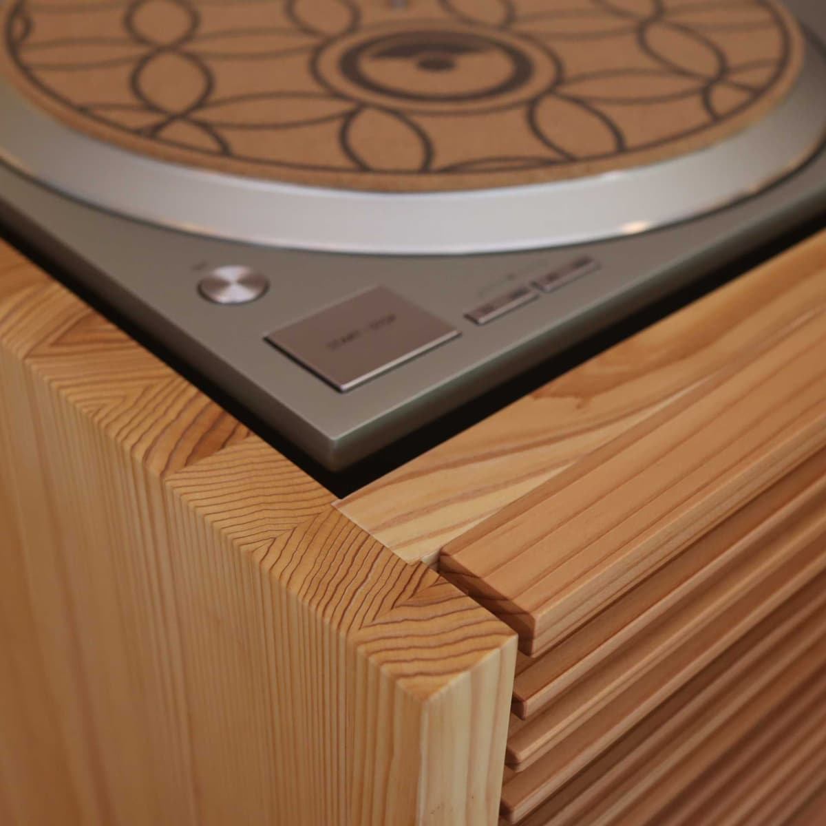 レコードプレーヤーやスピーカー一体型の“オーディオ家具”。熊本県産杉を使用