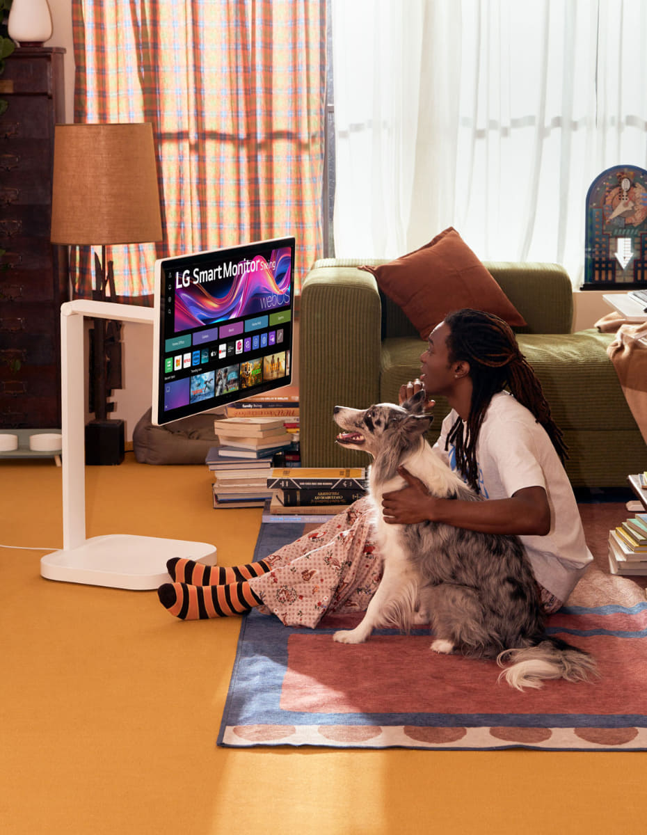 • 片手で移動、高さ調整、ピボットできるLG 4Kスマートモニタ。映画鑑賞からリモートワークにも