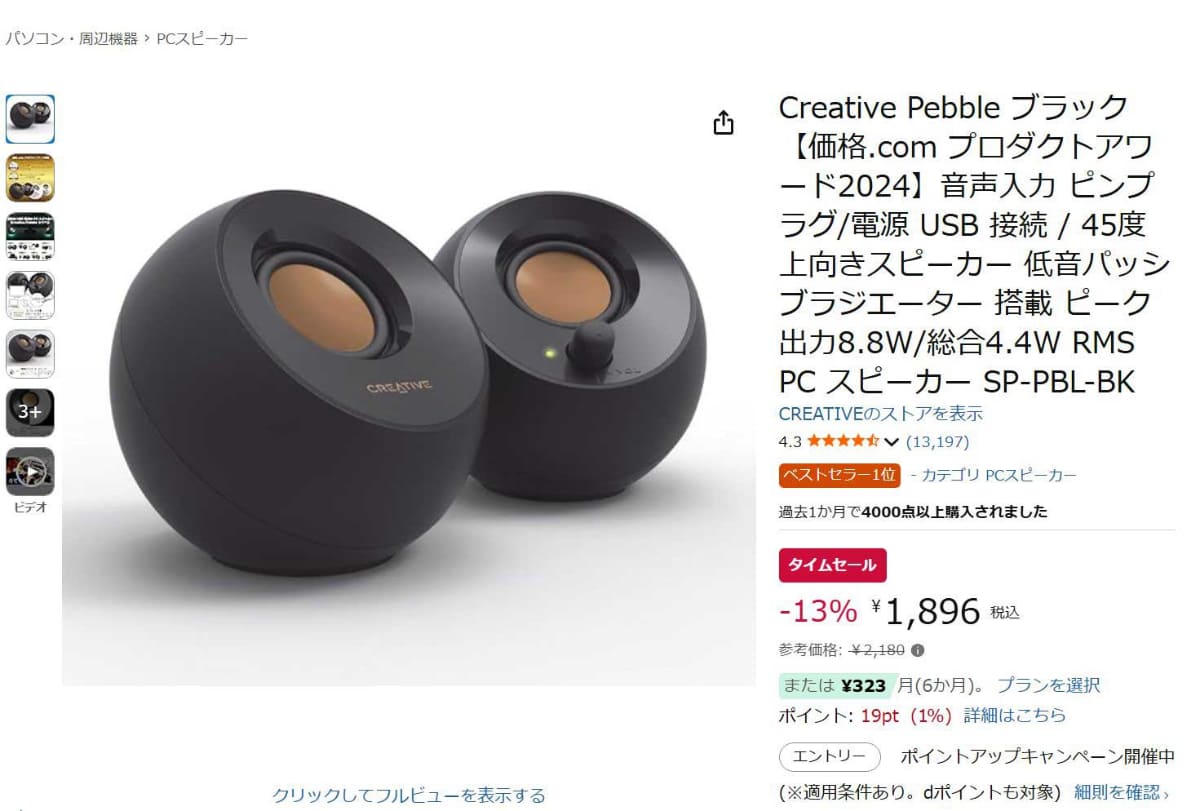 クリエイティブ、RGBライト搭載の球形小型スピーカー。期間限定で2979円