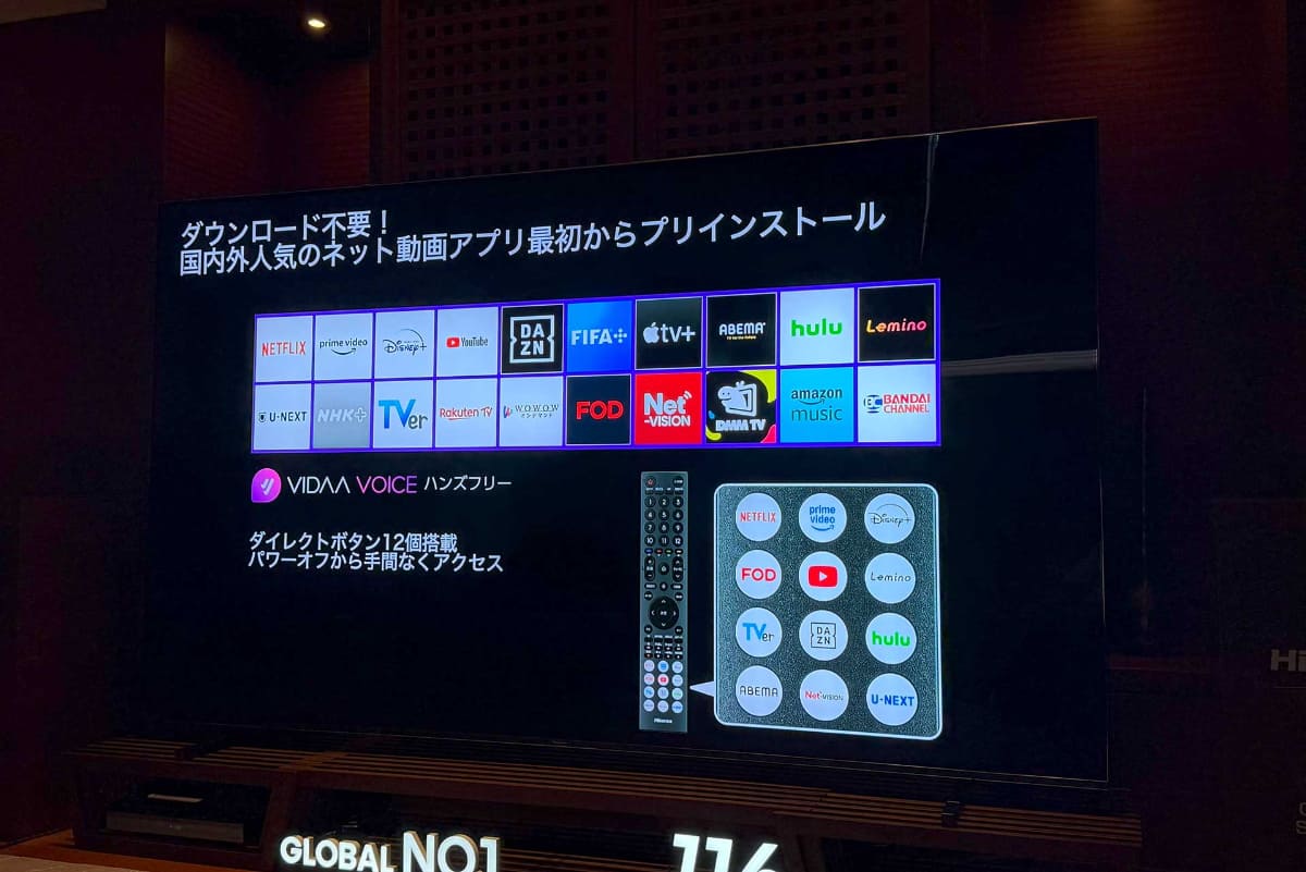 ハイセンス、国内最大116型の4KミニLEDテレビ。約550万円(7/13)