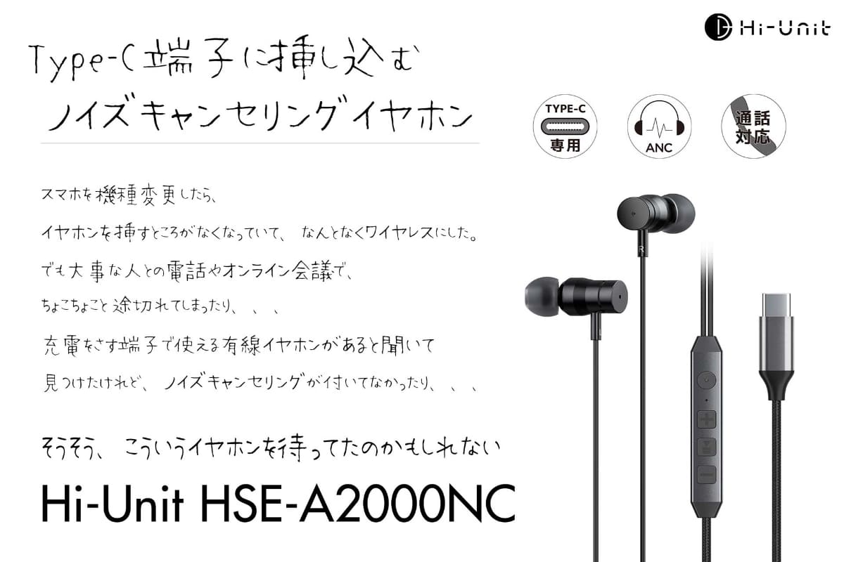 Hi-Unit、ロングセラー有線イヤフォンにUSB-Cアダプタ付属「HSE-A1000withC」