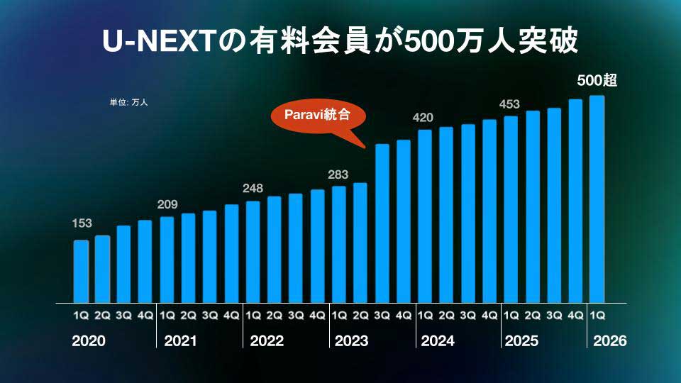 U-NEXT、映像配信に“音楽サブスク”サービス追加へ。課金ユーザーは30年8月期630万人超目指す