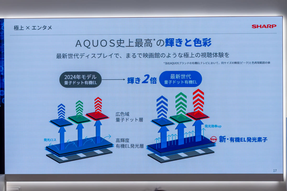 シャープ、輝き2倍になった最新世代QD-OLED。空間認識AIで明暗クッキリ