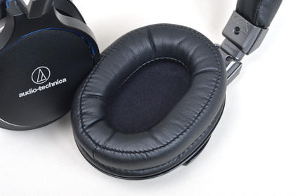 さっそく装着してみると、やや強めの側圧でしっかりとホールドされる。強めに頭を振ってみてもずれるようなことはない。側圧が強いと長時間のリスニングでは疲れやすいと思われそうだが、立体縫製のイヤーパッドは厚みのある低反発素材が充填されており、耳の周りを包み込むようにフィットする。ぐっと押される感じはあるものの、感触はソフトであまり圧迫感はない。これはなかなか良好なホールド感だ。
